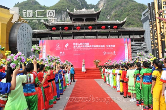 9月7日上午,銅仁市民族風(fēng)情園彩旗飄揚,載歌載舞,熱鬧歡騰,一派喜慶。第九屆全國少數(shù)民族傳統(tǒng)體育運動會銅仁站火炬?zhèn)鬟f在這里隆重舉行。