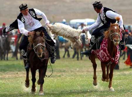 哈薩克、柯爾克孜、塔吉克等民族所喜愛的一種傳統(tǒng)的體育運(yùn)動(dòng),多在節(jié)日或喜慶集會(huì)時(shí)舉行。