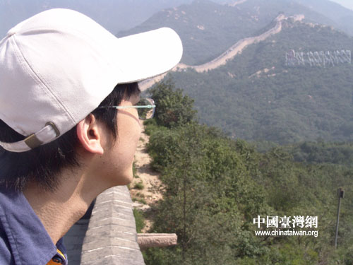 胡翔淳在大陸同學們的幫助下登上長城并欣賞美景