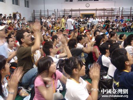 營員們吃過晚餐,便開始陸陸續(xù)續(xù)的前往體育大學武術館,原來剛剛成立不久的體育藝術團的老師同學們要在這里為臺灣同胞獻上精彩的節(jié)目,臺灣原住民也受邀表演。