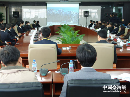 臺灣青年代表團在北京奧運大廈聽取奧運會籌備情況介紹