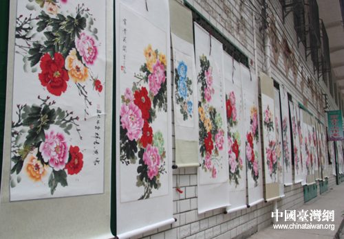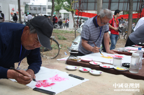 中國(guó)臺(tái)灣網(wǎng)5月27日洛陽消息 男女老少畫牡丹,幸福生活吉祥如意。這就是5月27日第八屆“網(wǎng)上看河南”北線采風(fēng)團(tuán)在洛陽孟津縣平樂鎮(zhèn)平樂村看到的景象。