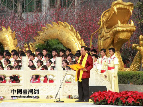十屆全國人大常委會副委員長、中華炎黃文化研究會會長許嘉璐恭讀《拜祖文》。(中國臺灣網 馬迪 攝)