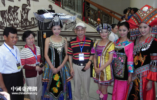 臺灣嘉賓與少數(shù)民族姑娘合影留念(中國臺灣網(wǎng) 蕪同 攝)