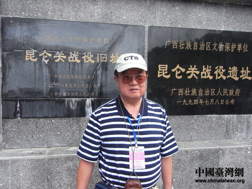 來自臺灣的退役將領周蓉生在昆侖關戰役舊址留影。(中國臺灣網 蕪同 攝)
