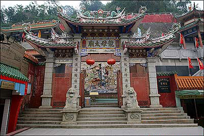 龍母廟位于梧州市桂林路,始建于北宋時期,是一座千年古建筑。有主殿、后殿、五龍噴水壁、總府題名碑等。主殿一排三間,中為龍母殿,左為太子殿,右為傅將軍殿。據考證,龍母是古代我國南方“倉吾”族首領,生于農歷五月初八日,民間稱此日為“龍母誕”;逝世于農歷八月十五日,民間稱此日為“升仙日”。由于龍母竭盡全力帶領人民開山治水,為鄉親造福,深得百姓愛戴,因此,“龍母誕”和“升仙日”就成了龍母廟的傳統紀念日。到時,不少信男善女專門從粵港澳地區趕來焚香拜膜。近年來,市博物館自籌了30多萬資金,對龍母廟這一文物旅游景點進行了修繕,新落成了一幅“富、祿、壽”圖,并請廣東石灣美術陶瓷廠按圖在大門正對面的石壁上特制了一幅28平方米的大型浮雕。2000年6月6日,鴛江大橋落成典禮之際,梧州市召開了第一屆龍母文化節,上萬名群眾在龍母廟前的廣場上載歌載舞,五彩繽紛的煙花照亮了整個夜空,把龍母的故鄉裝扮得更加絢麗多彩。