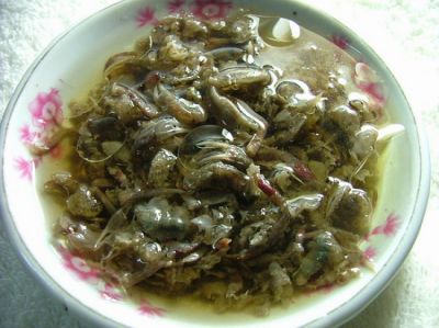 哦!我才恍然大悟,原來就是傳說中的沙蟹汁啊。再夾起豆角嘗,真的,豆角的味道中夾著蟹的香味,味道偏咸,有時候吃豆角,還會嚼出“喳喳”的蟹腳聲。不過放心好了,因為沙蟹實在太小,它的殼及腳對人的牙齒構(gòu)不成任何威脅。這一道沙蟹汁烹豆角最后的結(jié)局是,不但大部分豆角被我強行扒進碗中“霸占”,而且連豆角汁也被用來撈飯,真所謂“尸骨無存”!