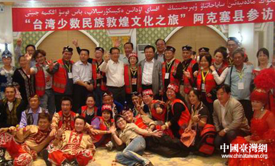 臺灣少數民族敦煌文化之旅參訪團在肅南裕固族自治縣與當地少數民族聯歡(圖片來源:甘肅省臺辦)