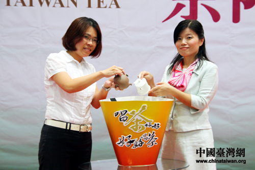 臺灣區茶輸出業同業公會理事長高毅芳與財團法人中衛發展中心專案經理林孟麗,共同啟動臺灣名茶發表會 (中國臺灣網 孫金誠 攝)