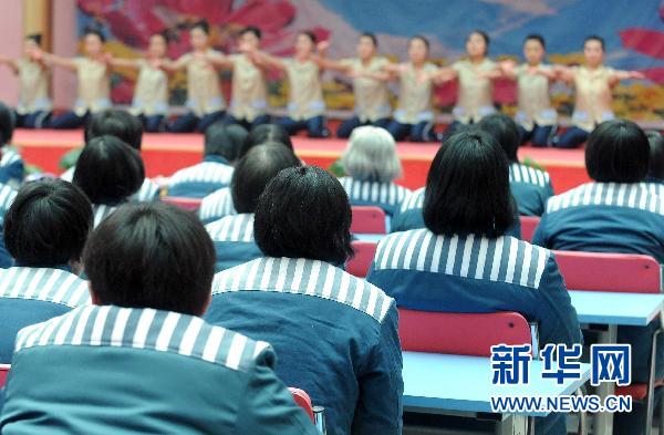 2月17日,在參加“月圓人圓”親情幫教會上,服刑人員們在觀看情景舞蹈《在媽媽懷抱里》。當日,是農歷正月十五元宵節,在這個萬家團聚的日子里,大墻之內也正演繹著一種別樣的悲歡離合——河南省鄭州女子監獄的29名服刑人員,和毗鄰的豫中監獄有著親屬關系的服刑人員,相聚在兩座監獄共同舉辦的 “月圓人圓”親情幫教會上,共度元宵佳節。 新華社記者王頌攝
