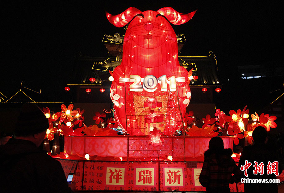 2月15日是傳統的元宵節前“上燈日”,南京閱江樓景區的靜海寺廣場舉行彩燈亮燈儀式,璀璨燈彩將景區裝扮得喜氣洋洋。阿董 攝 圖片來源:CNSPHOTO