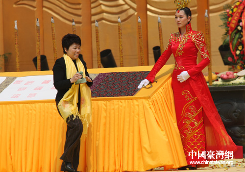 奧運(yùn)冠軍鄧亞萍祈福中華盛世(中國臺灣網(wǎng) 宿靜 攝)