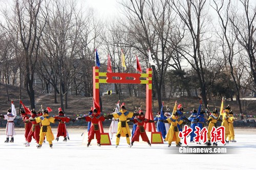 清代歷史上被視為“國俗”的冰嬉表演在消失百年后首次重現古都北京,成為第二屆圓明園皇家廟會的最大亮點。 應妮 攝
