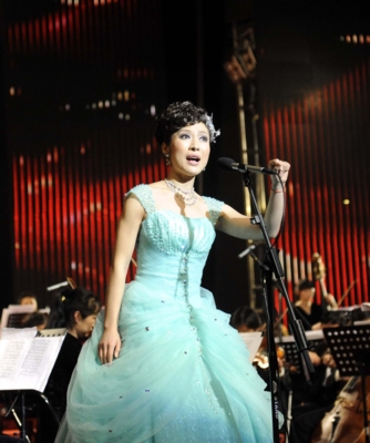 交響樂晚會現場,何瑩唱了一首耳熟能詳的《看天下勞苦人民得解放》。周柏平 攝