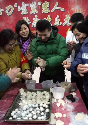 昨日,開福區荷花池社區的工作人員和社區的50多名空巢老人一起包著餃子、搓著湯丸、聊著家常。當日,該社區組織的“給力空巢老人,共度歡樂元宵”啟動。賀文兵 攝