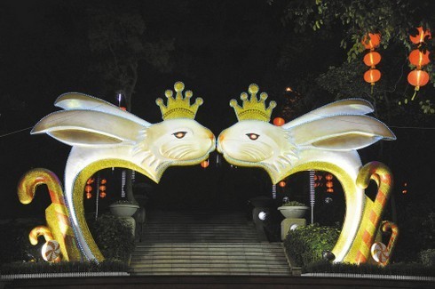 而白云山歷來(lái)被認(rèn)為是情侶最值得去的元宵賞燈地。白云山的燈飾分布全山不同地方。山頂廣場(chǎng)有“福兔新春送吉祥”、“皇冠兔子賀新春”等大型燈飾,在西門(mén)和桃花澗,則設(shè)置有財(cái)神爺、玉兔和桃花仙子等造型的燈飾。
