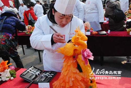 人民網青島2月11日電 (記者 楊紅) 今天,素有“青島新春第一節”之稱的2011青島(市北)蘿卜會·元宵山會拉開帷幕。清脆的蘿卜,唯妙唯肖的蘿卜雕刻、各地特色小吃、傳統高蹺、民間大鼓等吸引了數萬市民前來參會。