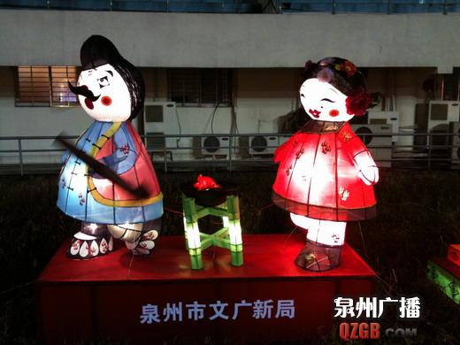 在這些花燈作品中,又以大型的坐燈最為吸引眼球。現場高度最高的一件花燈作品,是由泉州市委宣傳部選送的。大大的舞臺,象征著泉州在海西發展中勇爭前列。舞臺上面,十一顆五角星,象征著過去十一個五年計劃的輝煌成就,最上面一顆巨大的星星,則象征著十二五期間,泉州將實現 “跨越發展”。