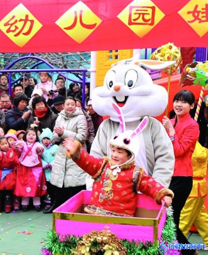 彩車巡游、跑旱船。元宵節(jié)當(dāng)天,北京市東城區(qū)崇文回民幼兒園開展“我和兔年有個約會”主題活動,小朋友們用環(huán)保材料制作裝飾品,學(xué)習(xí)民俗知識。(本報記者 樊世剛 攝)