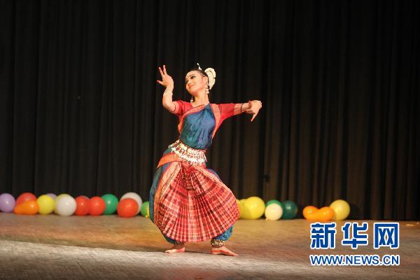 1月29日,在印度首都新德里舉辦的“2011相聚在印度”春節聯歡會上,中國留學生李纖纖表演印度舞蹈。 新華社記者李毅剛攝