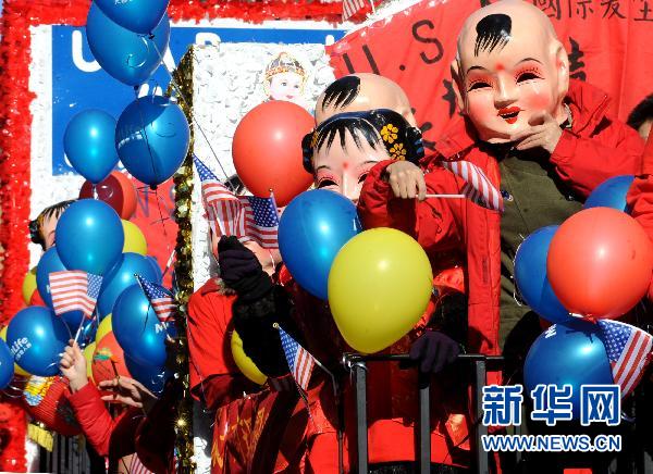 2月6日,當地華人在美國紐約唐人街參加新春大游行。當日,美國紐約唐人街舉行新春大游行,慶祝中國兔年春節。 新華社記者申宏攝