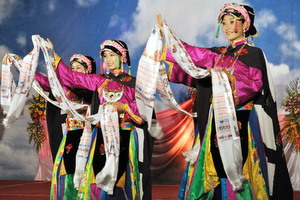 招待會上,來自四川阿壩地區的歌舞團為到場嘉賓獻上傳統的藏族歌舞,贏得了陣陣掌聲與喝彩,不時有藏胞上臺為演員獻上哈達。招待會現場始終充滿著歡快喜慶的氣氛,出席活動的藏胞朋友紛紛表示,招待會讓他們感受到了祖國大家庭的溫暖。
