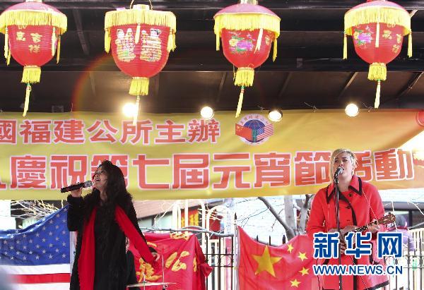 2月17日,演員在美國紐約曼哈頓華埠的元宵節慶;顒由媳硌。當天,美國福建公所在紐約曼哈頓華埠舉辦第七屆元宵節活動,讓海外華人在元宵佳節里也能感受到家鄉的溫暖。 新華社記者朱煒攝