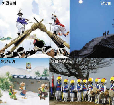 與此同時,在韓國的農(nóng)村,還保留著一些正月十五的傳統(tǒng)慶;顒。比如說,“焚燒月亮屋”許愿是韓國最具代表性的風(fēng)俗之一。在正月十五的月亮下,人們點燃用小松枝堆成的“月亮屋”,一邊賞月一邊來許下新一年的愿望。正月十五這一天,人們還做一些游戲,來放松心情。踩橋是韓國婦女們的游戲。幾十名婦女彎腰排成長隊,后面的人抱住前面人的腰,形成一座長長的人橋,從隊尾的人開始按著順序從人橋上踩過去,下來后再彎腰搭成新的人橋。