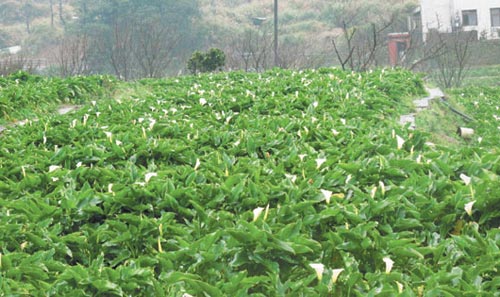 中新網1月13日電 據臺灣《聯合報》報道,臺北陽明山的海芋開花了。受到冷熱天氣交替的影響,竹子湖的海芋田提前冒出一朵朵鮮白的花苞,原本二月初才會開花的海芋,上個月初就開始陸續開花。業者強調,今年夠冷,海芋質量優于往年,預估春節期間就可以開放采花。
