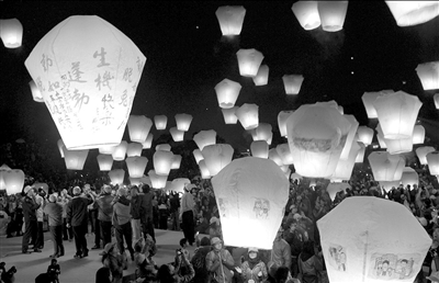 臺灣平溪元宵夜放天燈 吸引數十萬游客賞玩(圖)