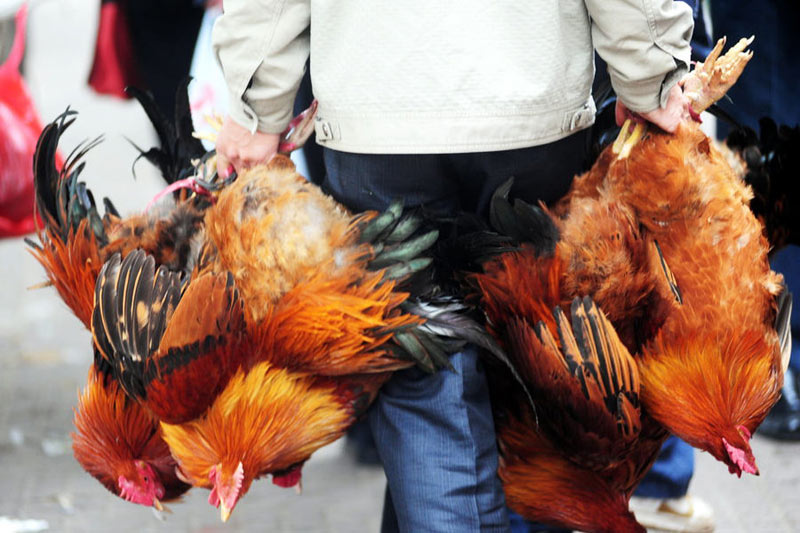 2月1日,海南瓊海,有“無(wú)雞不成”傳統(tǒng)的瓊海節(jié)前雞市異常火爆,一位市民一次購(gòu)買(mǎi)數(shù)只閹雞。