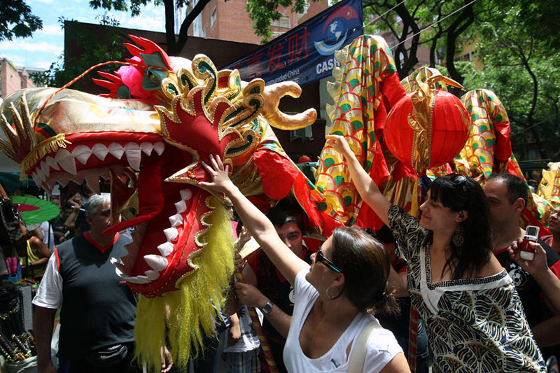當(dāng)?shù)貢r(shí)間1月30日,在阿根廷首都布宜諾斯艾利斯“中國(guó)城”舉辦的廟會(huì)上,當(dāng)?shù)孛癖娪|摸龍頭。阿根廷華僑華人當(dāng)天在布宜諾斯艾利斯的“中國(guó)城”舉行春節(jié)廟會(huì),慶祝中國(guó)農(nóng)歷新春佳節(jié)的到來(lái)。這是當(dāng)?shù)厝A人連續(xù)第五年舉辦春節(jié)廟會(huì)活動(dòng)。