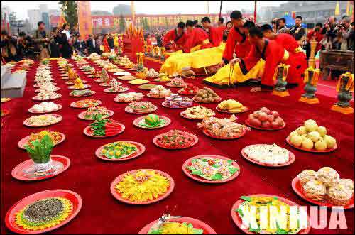 在過(guò)去,每年到了除夕夜,許多人家都會(huì)擺上一桌天地桌,上面擺滿了祭神用的各種貢品和蠟燭,墻上貼好了要拜的神像。此種習(xí)俗傳說(shuō)中是為了要接神仙下屆而特意準(zhǔn)備的。雖然現(xiàn)在這種封建傳統(tǒng)已經(jīng)被破除,但它本身也不失為一種有意思的民俗活動(dòng)。
