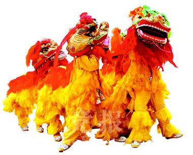 過去北京不允許舞龍,因為龍代表皇權(quán),只能宮廷中太監(jiān)舞給皇帝玩,事先必須有特赦才可進行。宮中舞的是“火龍”,龍體透明,內(nèi)置點燃的油燈,在黃昏或夜晚時進行,蔚為壯觀。舞獅在北京比較普遍,但北京舞獅不像南獅,沒有過多的雜技技巧,主要講究威武莊嚴(yán)。初期很簡單,是一塊布,獅頭用泥巴或紙漿做成,非常丑陋,幾乎全是禿的。而南獅相對精細(xì),但造型更像貓,沒有獅子的威風(fēng)。