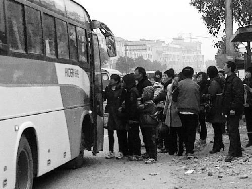 岳母家位于蘭溪至游埠的公路邊,過路車很多,但回蘭溪城里時仍搭不上車。過路的車沒一輛肯停。記者步行了一公里來到永昌車站。永昌是大站,330國道穿永昌而過,過往車輛極多,每隔兩三分鐘就有一趟車。但等了好幾趟我們才擠上車。一上車,門口處已經站滿了人,連門都很難關了。到了下一站,又有好多人要上車。售票員讓下面的人等下一趟車,但一位大伯非擠上來不可。“幫幫忙,幫幫忙,都4趟車過去了,再等下去也一樣,讓我上來吧!”