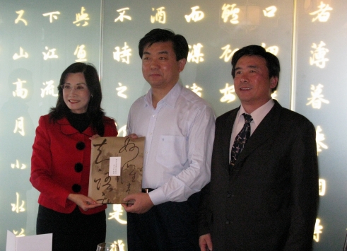 許立全市長(zhǎng)(中)與臺(tái)北縣觀光局秦慧珠局長(zhǎng)(左)等合影