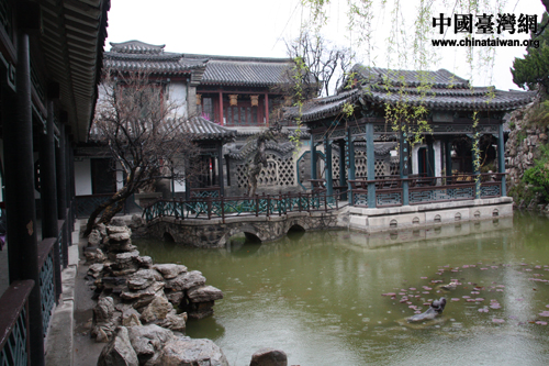 中國(guó)臺(tái)灣網(wǎng)4月21日濰坊消息 21日,臺(tái)灣新竹磐石中學(xué)的30名師生游覽了濰坊市十笏園,北方園林袖珍式建筑給他們留下深刻的印象,小雨也為此行增添了許多朦朧的美感。