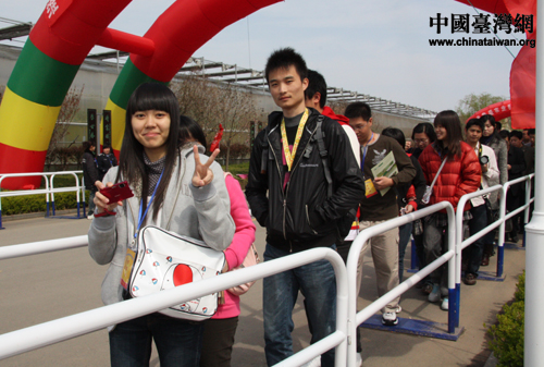 中國臺灣網4月22日濰坊消息 由臺灣明道大學、新竹磐石中學的師生們組成的文化教育交流訪問團今日到訪濰坊壽光市,參觀了第十一屆中國(壽光)國際蔬菜科技博覽會。精致的展館給同學們留下深刻的印象,紛紛合影留念。