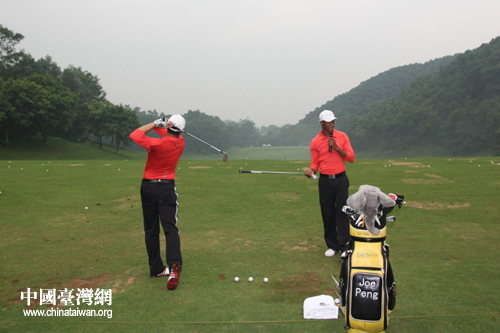高爾夫教練為記者們做現場演示(中國臺灣網 趙輝 攝)
