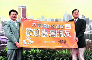廣州市長萬慶良向臺灣同胞致送亞運會邀請函。記者黎旭陽攝