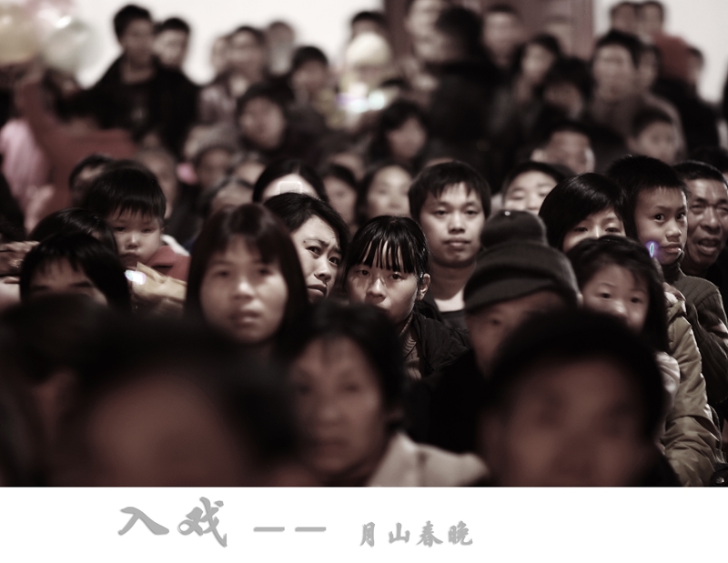 舞臺的右前方用一根紅繩子拉出的一個空間是演員的后臺,上臺表演的演員們都盡量找來相似的衣服來統一服裝,8個小姑娘表演《竹筒聲聲》是惟一一個穿著統一表演服的節目,可她們腳上的襪子確是五顏六色的。但不可否認,按照正常的演出質量評價,整個演出確實有著無數的不足。但誰都會說這樣的晚會好看,衣服可以不統一,節拍也可以不準,但表演時候的笑臉和認真勁一定不能少。更難得的是,臺下僅有的40多張凳子都是讓村里的老人坐著,年輕人一律圍站著著迷地看著,在這里沒有倒彩,只有喝彩,只有笑聲。在這個不時地灌進冷風簡陋的禮堂中,臺上臺下合起來擰成了一股非常熱騰騰的暖氣,他們是冬天里的一把火,烘得人心里暖洋洋。