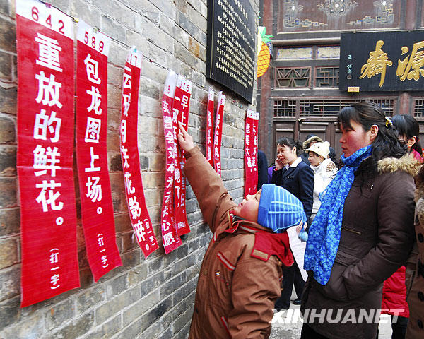 2月14日,游人在淄博周村古商城民俗活動上猜謎語。當日是農歷大年初一,山東淄博周村古商城推出賞花燈、劃旱船、猜謎語等系列民俗活動,讓游客體驗過民俗大年的樂趣。新華社發(董乃德 攝)
