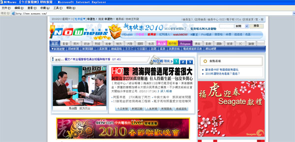 臺灣“今日新聞網”設置了直播專區對央視春晚進行全程直播。