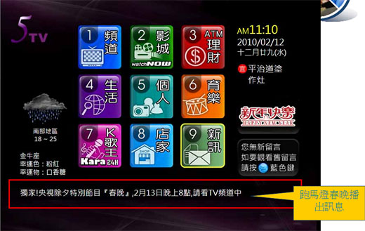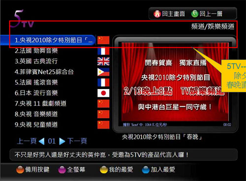 臺灣5TV網站設置了直播專區對央視春晚進行全程直播。