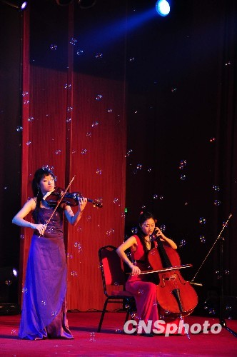 圖為臺灣弦音室內樂集的藝術家在表演弦樂五重奏《臺灣民謠組曲》。中新社發 馬俊杰 攝