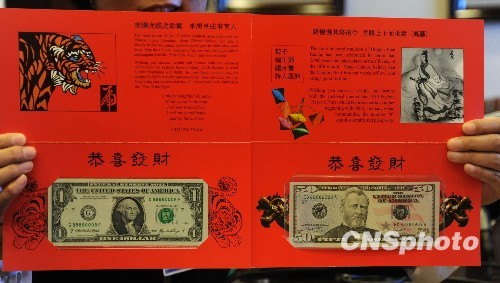 美國財政部造幣和印鈔局1日宣布,將限量發售中國虎年版“吉利錢”,向美國華裔社會送上新年祝福。中新社發 李靜 攝