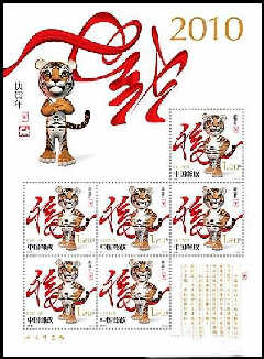 1月8日,在加拿大溫哥華,早在13年前就開始發行首套生肖郵票的加拿大郵務公司全面發行中國虎年郵票。1月14日上午,美國郵政總局在洛杉磯舉行了2010虎年生肖郵票首發式,這是美國發行的第二輪生肖郵票中的第三枚。美國是亞洲地區以外最早發行生肖郵票的國家。1993年中國農歷雞年,為紀念華人對美國社會的貢獻,美國郵政總局開始發行以中國生肖為主題的紀念郵票,到2004年猴年為止出齊一輪。此后,美國又于2005年和2006年發行了兩款設計相同、面值不同的十二生肖郵票雙面小全張。其在最后八元八角八分的總體價格安排上也頗費心思,諧音“發發發”的中國寓意甚是討巧。