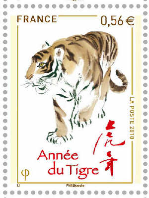 法國郵政總局發售的中國虎年生肖紀念郵票。新華社發