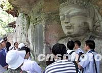 前來重慶參加“情系三峽——兩岸文化聯(lián)誼行”活動(dòng)的兩岸文化界人士,01年7月16日參觀位于重慶市大足縣的大足石刻。宏偉壯觀的大足石刻,距今已有1000多年的歷史,被聯(lián)合國(guó)教科文組織列為世界文化遺產(chǎn)。中新社記者 毛建軍 攝