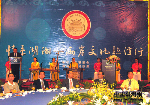 中國臺灣網(wǎng)7月9日長沙消息 由中華文化聯(lián)誼會和湖南省人民政府共同主辦的“情系湖湘——兩岸文化聯(lián)誼行”大型文化交流活動,7月8日晚在湖南長沙市正式啟動。來自海峽兩岸的100多位文化精英、其中包括來自臺灣和港澳地區(qū)的百位文化界人士出席了今天的開幕式。